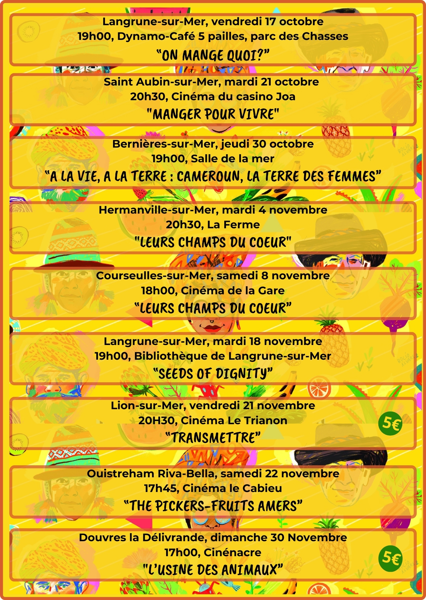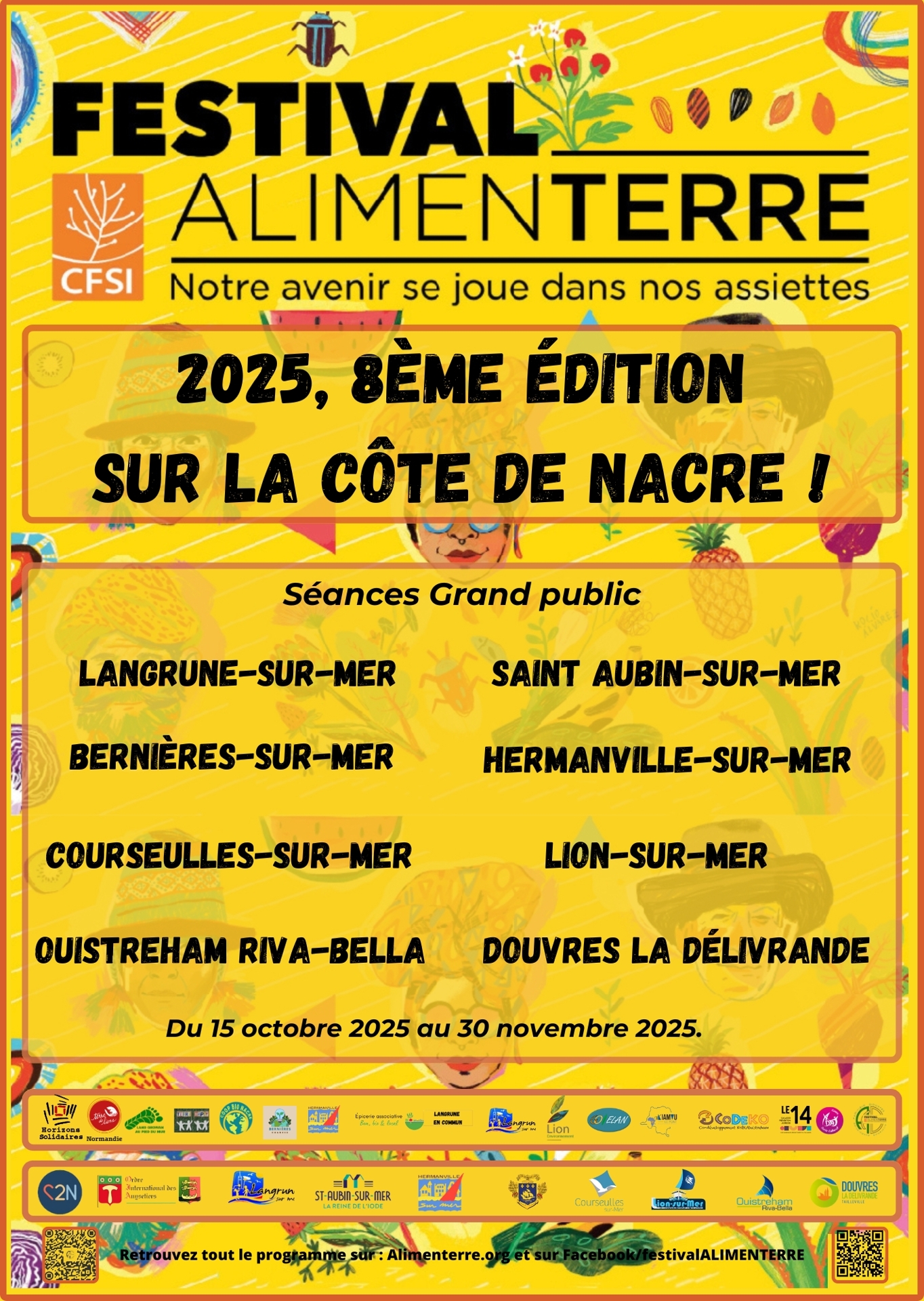 Du 15 octobre au 30 novembre 2025, la Côte de Nacre accueille la 8ème édition du Festival ALIMENTERRE, un rendez-vous engagé autour de l’alimentation durable. Films, débats et rencontres vous invitent à réfléchir et agir pour une agriculture plus juste et respectueuse de l’environnement. Retrouvez le programme complet sur Alimenterre.org !